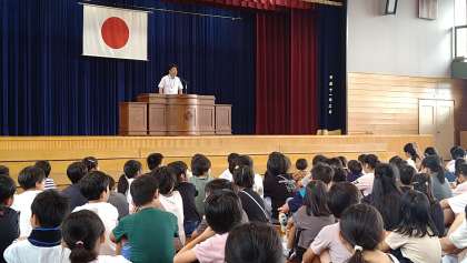 「楽しい学校」を新保っ子でつくろう!と、始まった一学期も今日が最終日です。終業式では、校長先生から、各学年の楽しかったことを振り返るお話と、「とことん」楽しい夏休みにしようというお話がありました。