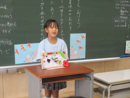 2年生:夏休み作品展 1組:8月28日(水) 公開日 2024/08/28 更新日 2024/08/28 2年生の部屋 夏休みにがんばって取り組んだ自由研究や工作をみんなの前で紹介しました。 研究で大変だったところや工夫したところを聞き合い、「すごい」「おもしろそう、自分もやってみたい」と感想を伝え、互いのがんばりを認め合っていました。