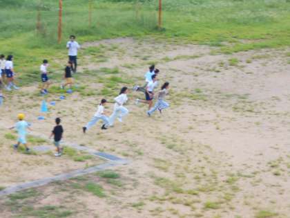 毎週火曜日の業間(2限と3限の休み時間)の「すこやかタイム」には、「できっこないことを やらなくちゃ」(サンボマスター 2010)が全校に流れます。新保っ子一人一人が目当てをもって運動に取り組む時間です。短距離走、ラダートレーニング、走り幅跳び、鉄棒、ボール投げ、縄跳び運動など、自分で種目を決めて「なりたい自分」になろうと頑張っています。2学期は、県総合運動公園陸上競技場で「運動会」があります。