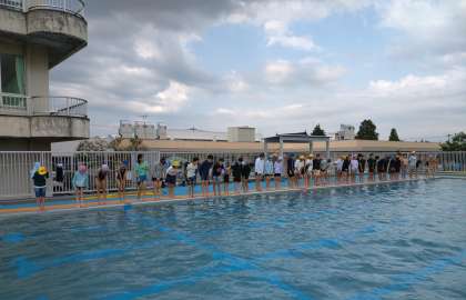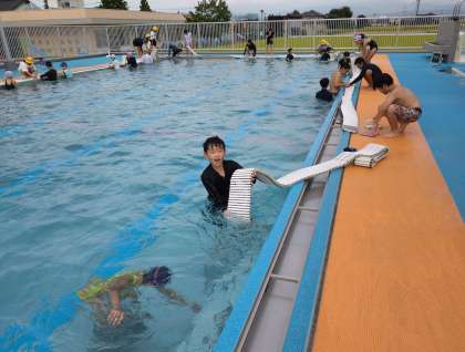 最後の水泳学習が終わりました。プールに挨拶をして、安全に楽しく学習できたことへの感謝を伝えました。最後にプールの片付けもしました。