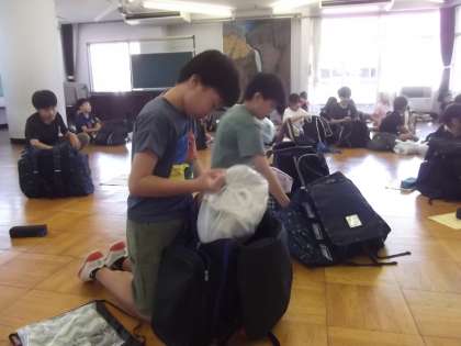 宿泊学習に持っていく大リュックの中身を確認しました。