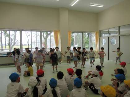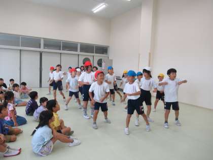 今日の新保っ子タイムは、2年生と運動会のダンス練習をしました。お互いにダンスを披露し、素敵なところを伝え合いました。最初はドキドキしていた子供たちも、歌が進むにつれ、笑顔がキラリ!ジャンプや手拍子をそろえて、楽しそうにダンスしていました。
