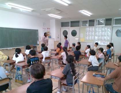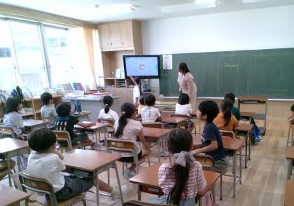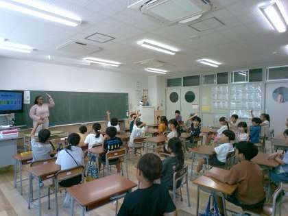 ALTの先生と外国語の学習を行いました。積極的に手を挙げて発表したり、質問をしたりしながら外国語に親しみました。