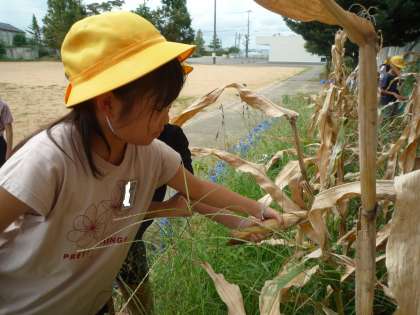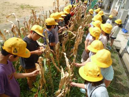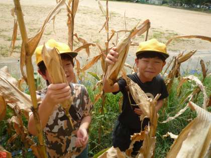 2年生:生活科「ポップコーンの収穫」:9月19日(木) 公開日 2024/09/19 更新日 2024/09/19 2年生の部屋 1学期に野菜と一緒に植えたポップコーンを収穫しました。自分の背丈より高くなったポップコーンもありましたね。皮をめくってみると、黄色のきれいな粒がたくさんありました。これから乾燥させて、ポップコーンにして食べるのが楽しみですね。