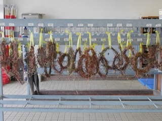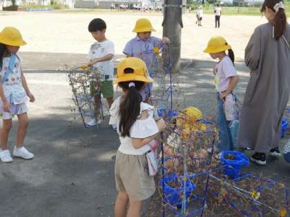 1年生:生活科「あさがおリース」:9月25日(水) 公開日 2024/09/26 更新日 2024/09/26 1年生の部屋 5月から大切に育ててきたあさがおを思い出に残すために、リース作りをしました。支柱にツルが絡まってなかなか取るのが大変でしたが、友達と協力しながら作業を進めました。今度はリースに飾りを付けていきます。
