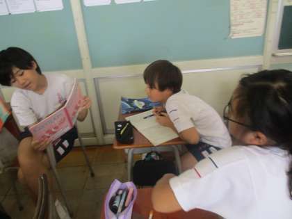国語の授業で、「方言と共通語」の学習をしました。初対面の人と話す場合はどちらの方がよいのかを考え、共通語で話すことのよさに気づきました。また、地域のよさを伝える場合にはどちらがよいのかについては、方言の場合も共通語の場合もそれぞれによさがあると考え、理由を伝え合いました。