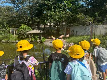 1年生:校外学習「ファミリーパーク」その1 公開日 2024/09/27 更新日 2024/09/27 1年生の部屋 校外学習で富山市ファミリーパークへ行ってきました。まずはキリン、シマウマ、フラミンゴなどを近くで見ました。フラミンゴのところでは「なんで片足なんだろう?」「フラミンゴと対決してみよう!」と、楽しみながら見ました。