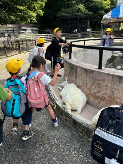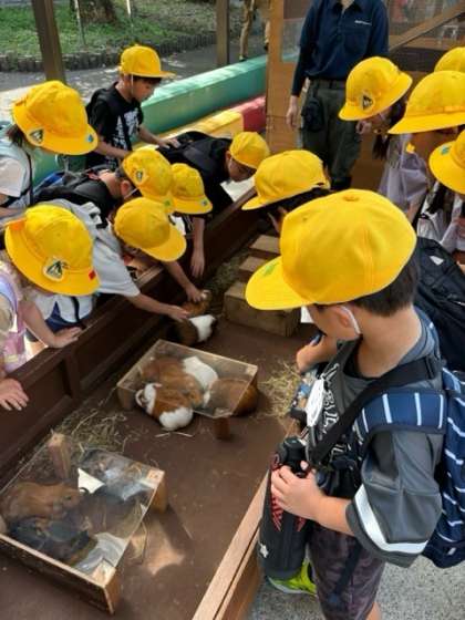 ふれあいコーナーでは、モルモットややぎに触ることができました。また、バードピアの前にいる「ルリコンゴウインコ」に「おはよう」と挨拶を返してもらい大喜びでした。