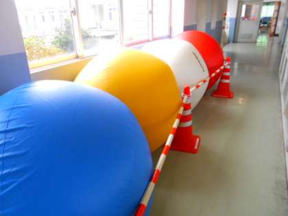 来週は運動会です。今年の運動会で使う大玉です。直径が120センチメートルあります。大玉を使う競技は、次の記事をごらんください。