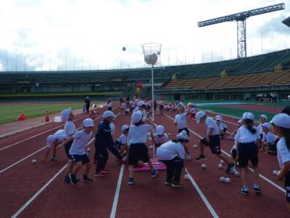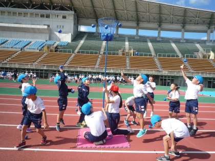 低学年競技の「あいうえぽん」の様子です。1年生と一緒に、楽しみながら頑張っていました。
