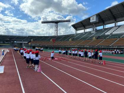 実際の場所で玉入れもしてみました。他の学年もノリノリで踊ってくれて楽しんで玉入れをすることができました。本番も元気いっぱいのダンスと玉入れにご注目ください。