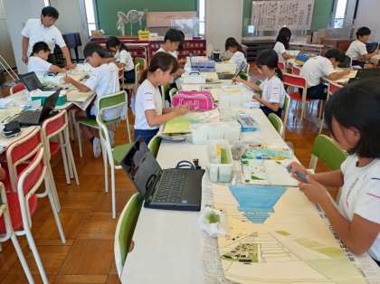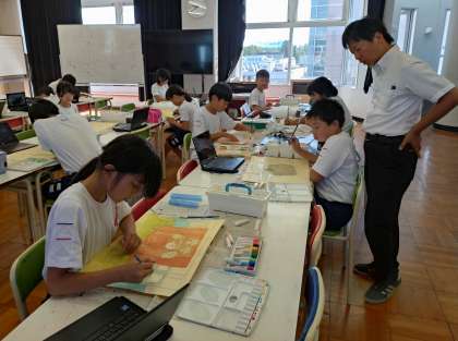 卒業まで残り半年。図画工作科の時間には、学校の中で思い入れのある場所を選び、水彩で描いています。