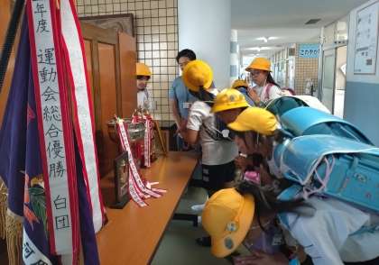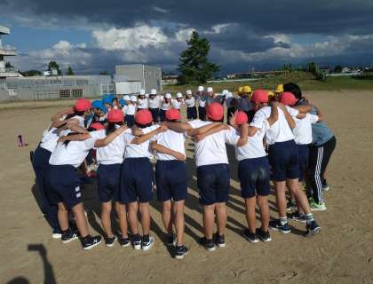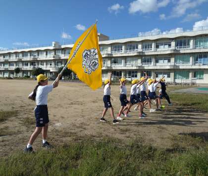 最後に、6年生みんなで円陣を組みました。優勝旗に「優勝できますように」と祈る子どもいました。