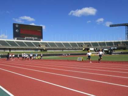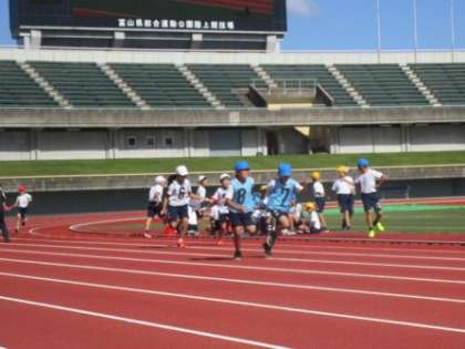 「ビートDEフープ」では、フープをバトンにして、二人でビートー息を合わせゴールを目指しました。