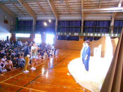 今日は、劇団風の子中部による「ユエと瑠璃色の石」の劇を全校で鑑賞しました。今を生きる、自分を生きる、ファンタジーで描く少女の成長物語でした。新保っ子の物語にどっぷりと浸りきっている姿が印象的でした。