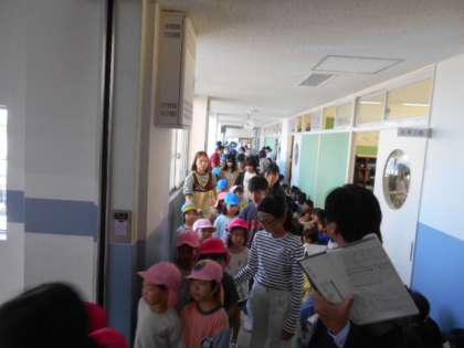 今日は、地域防災避難訓練を行いました。新保校区の住民の方、新保なかよし認定こども園の園児と職員の方と合同で、神通川と熊野川が氾濫し浸水の恐れがあるとの想定で、屋上まで避難しました。500名以上の人が避難するため、とても時間がかかりました。高学年は、こども園の園児の避難を手伝い、みんなでみんなの命を守る避難訓練になりました。