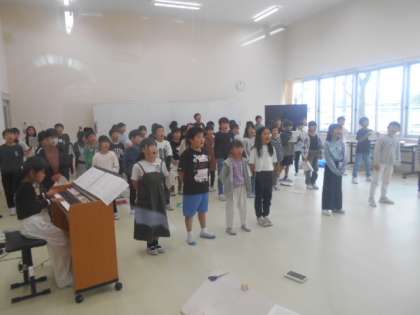 いよいよ明日から11月です。はやいもので2学期も折り返しとなります。11月は、「学習発表会」があり、日々の学習の中でも、思考し学んだことや考えたことを表現する学習を大切にしていきます。さっそく、3年生が学習発表会で表現する歌の練習に取り組んでいました。