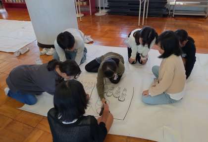 それぞれの役のイメージに合うように衣装を作ったり、ステージの背景を描いたりしています。全てを自分たちで作り上げる、小学校生活最後の学習発表会です。