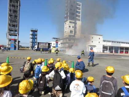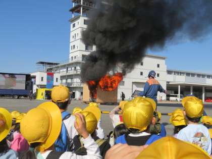 3年生:五感で感じる住宅防火:11月12日(火) 公開日 2024/11/13 更新日 2024/11/13 3年生の部屋 富山県消防学校で、防火教室が行われました。特設の住宅の天ぷら油から出火する様子を実験で見せていただきました。あっという間に火が燃え広がり、黒い煙をもくもくと上げて燃える様子は、本当に恐ろしかったです。火や煙の恐ろしさと火災予防について学んだり、消防士さんに質問したり、充実した防火教室となりました。