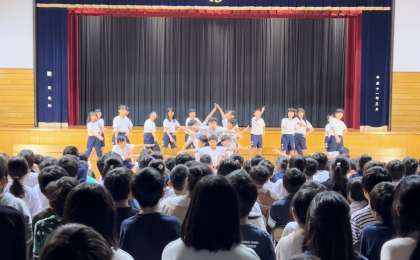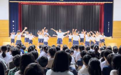 見ている人も自分たちもワクワクして思わず笑みがこぼれるような楽しいダンスを目指して、校内発表会では、全校に堂々と自分たちのダンスを見せました。発表の録画を新保っ子タイムに見て、よりよくしていけばよいところをあと二日で改善していきます。