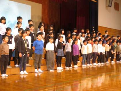 3年生:校内発表:11月13日(水) 公開日 2024/11/13 更新日 2024/11/13 3年生の部屋 国語科で学習した「ちいちゃんのかげおくり」を朗読と音楽で表現します。ピアノ伴奏も子供が担当します。今日は、緊張のあまり失敗したところもありましたが、リカバリーも上手くできていました。学習発表会に向けての改善点も自分たちで見付けていました。学習発表会当日は、「ちいちゃんのかげおくり」の世界を楽しんでいただけることと思います。