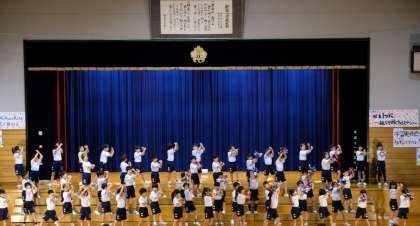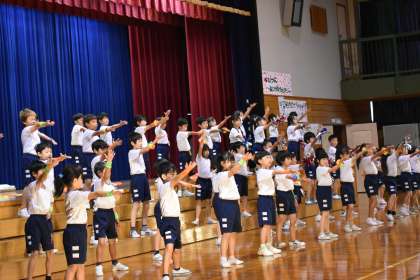 2年生は、「えがおいっぱい ダンスを楽しもう」をスローガンに、自分だけでなく体育館中の人がスマイルになる発表を目指して練習してきました。緊張する様子も見られましたが、笑顔いっぱい、全力で楽しむことができました。