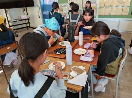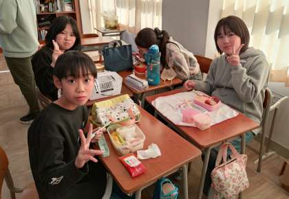 「先生、朝5時に起きて作りました!」登校すると、子供たちが朝からお弁当作りに取り組んだ様子をたくさん聞かせてくれました。昨年度から続いて3回目のお弁当の日というとこで、お昼には、こだわりがたくさん詰まった美味しいお弁当を嬉しそうにいただいていました。