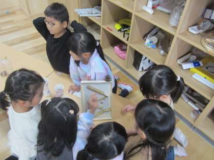1年生:生活「1の1おもちゃランドに行ってきたよ」:11月27日(水) 公開日 2024/11/28 更新日 2024/11/28 1年生の部屋 1の1秋のおもちゃランドに行ってきました!「こすりだしで、葉っぱの形が写るのが面白い!」「松ぼっくりけん玉で入ってうれしかった!」と楽しんだようでした。 明日は、1の2秋のおもちゃランドです。1の1のみんなが喜んでくれるか、ソワソワワクワクしている子供たちです。明日が楽しみです!