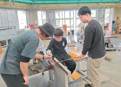 富山ガラス工房に、卒業制作に行ってきました。形や色を思い思いに選び、ペーパーウェイトを作りました。作る時は、工房の方にお手伝いしていただきました。