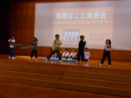 今日の新保っ子タイムは「得意なこと発表会」でした。ダンス、歌、縄跳び、マット運動、けん玉・・・、たくさんの技を新保っ子が見せてくれました。一人で歌を歌ったり技を披露したりする子もいました。また、発表している友達を応援する新保っ子の姿がとても素敵でした。司会や準備で盛り上げてくれた集会委員会の5,6年生もとても頑張っていました。