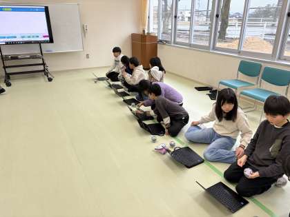 プログラミング出前授業(スフィロボルト体験)がありました。プログラミングと聞くと難しそうだと思っていましたが、やってみると楽しく、自分で出した指示通りに動くロボットを見て驚く子供たちでした。