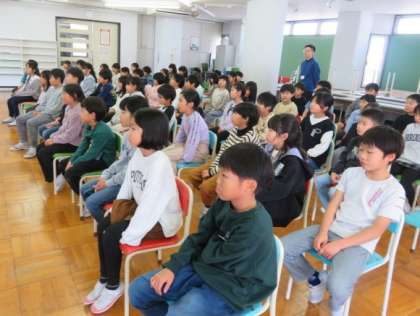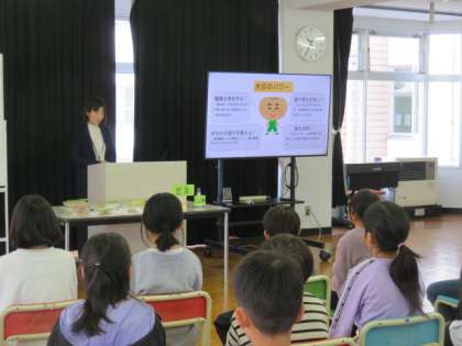 3年生:すがたをかえる大豆〜給食編〜:12月12日 公開日 2024/12/12 更新日 2024/12/12 3年生の部屋 栄養教諭から、大豆の栄養について話していただいたり、給食にはどのような姿で大豆が食べられているのか紹介していただいたりしました。子供たちは、これまでに総合的な学習の時間に調べてきたことと重ねながら、真剣に話を聞いていました。大豆製品が給食で多く使われていることをしり、大豆パワーについての学びも深まりました。