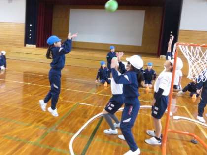 3年生:セストボール:12月19日(木) 公開日 2024/12/19 更新日 2024/12/19 3年生の部屋 360°どこからでもシュートを打てるようにゴールを設置することで、ゴールが決めやすくなります。ゴールの近くからシュートを狙ったり、守りから離れてシュートしたり、攻撃の仕方を工夫していました。ふんわりシュート、フェイントシュート等、身に付けたシュートの動きを生かし、総当たり戦を行いました。30秒ごとに攻守を入れ替えルことでスピード感も出て、ゲームを楽しむ姿が広がりました。