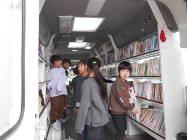 また、今年初めての自動車文庫の貸し出しがありました。思い思いに読みたい本を借りていました。