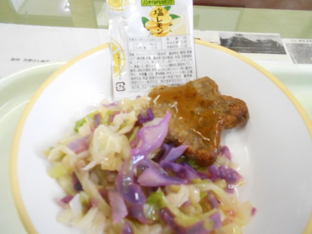 今日は「理科」、サイエンスサラダに注目!サラダの中に紫キャベツが入っています。レモンドレッシングをかけると紫色だったのが、ほんのり赤色に変化しました。色が変わるのは、なぜでしょう?6年生が今、理科で学習していることから考えれば、謎は解けます。6年生に聞いてください。