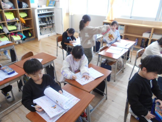 今日で1月が終わり、明日から2月です。各教室では、漢字の学習のまとめをしていました。漢字の学習のコツは、ただ練習するのではなく、漢字の意味や成り立ちに興味をもって取り組むことです。平仮名や片仮名は音だけを表す「表音文字」ですが、漢字は「表意文字」です。漢字の意味が分かること、その意味を手がかりに熟語をどんどん見付けることで、漢字の学習がたのしくなります。そして、言葉が豊かになります。練習して覚えるだけの漢字の学習では、思考が伴いません。学校では、学年に応じて工夫しながら取り組むようにしています。