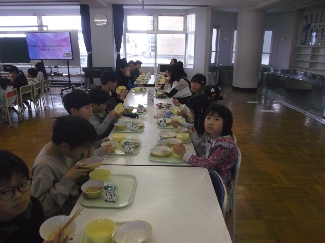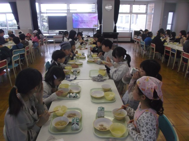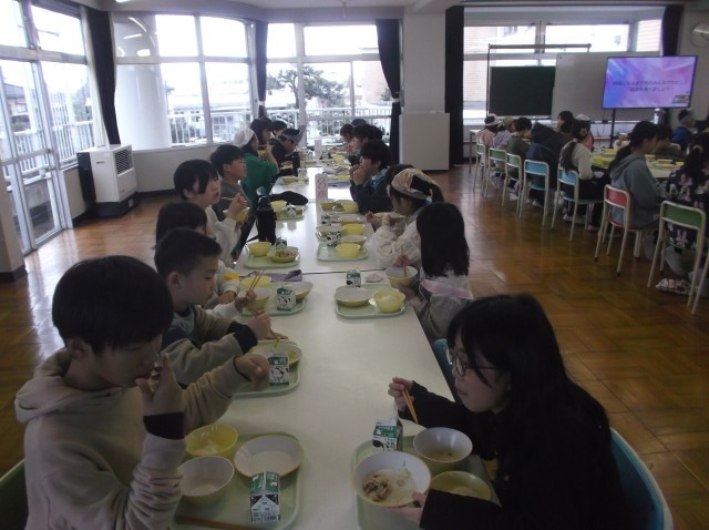 3月3日(月)今日の給食&新保っ子 公開日 2025/03/03 更新日 2025/03/03 今日の新保っ子 今日の給食ごはん、牛乳、豚肉の塩こうじ炒め、そえ野菜、ごま豆乳鍋卒業を祝う週間 色団会食 青団今日は、青団のみんなで給食を食べました。青団は、今年の運動会で、総合優勝、応援優勝のW優勝を勝ち取りましたね。 +2