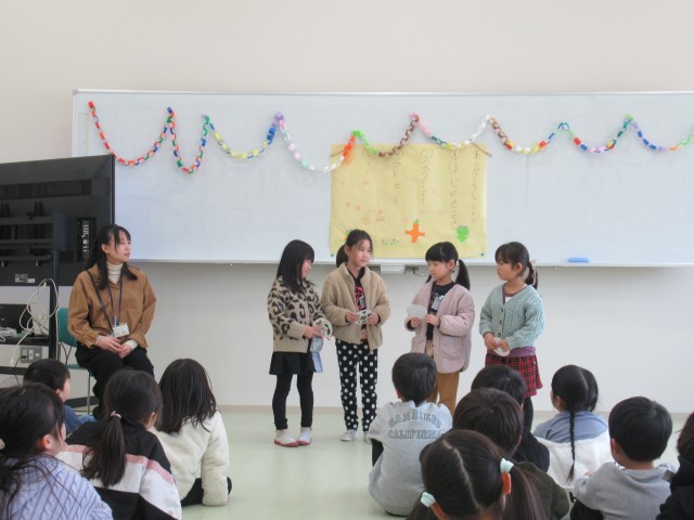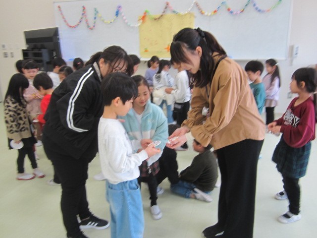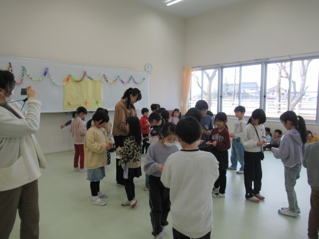 ありがとうの気持ちが伝わり、感極まる場面も。なかよしゲームをしたり、手紙のプレゼントを渡したりと、角谷先生との最後の集会を楽しんでいたようでした。