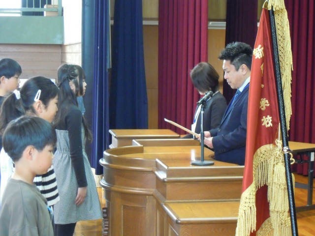 各学級で、担任の先生からあゆみをもらいました。子供たちは、担任の先生と1年間の頑張りを振り返りながら受け取りました。また、今年度末で離任される先生へ感謝の言葉を伝えるクラスもありました。