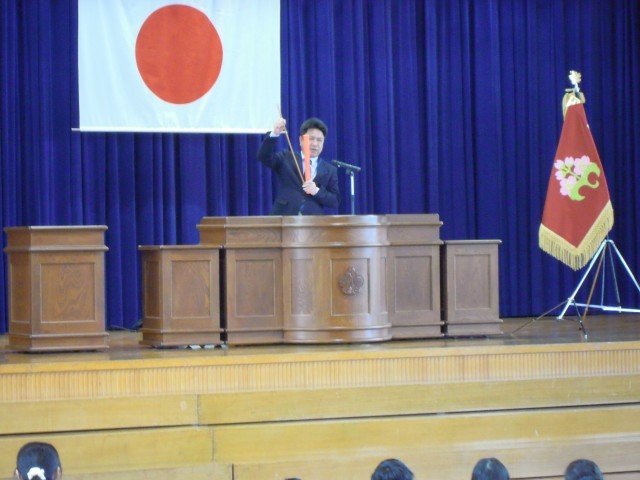 校長先生から各学級の代表者に修了証が手渡された後、2つのお話がありました。