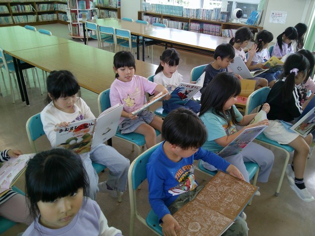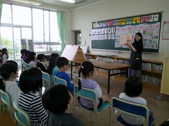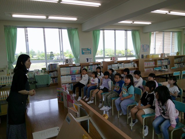 学校司書の先生に、図書室の使い方を教えてもらいました。学校の図書室にはたくさんの本があります。6年間で、たくさんの本を読むことができるといいですね。
