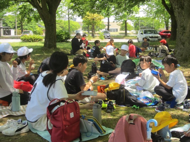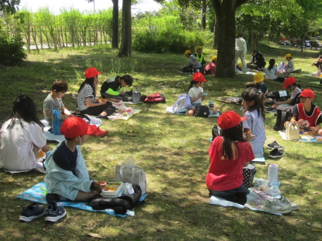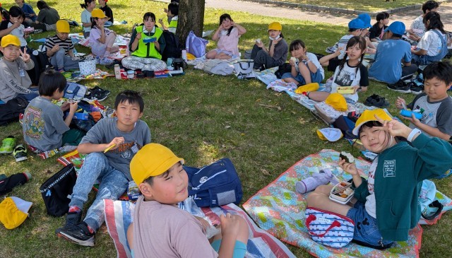 新保縦割りウォークラリー③:5月19日(月) 公開日 2025/05/19 更新日 2025/05/19 今日の新保っ子 待ちに待ったお昼ご飯の時間になりました。 ウォークラリーでお腹をすかせた子供たちは、嬉しそうにお弁当を食べていました。縦割り班の仲間で食べるお弁当は特別だったようで、南総合公園の芝生広場に、美味しい笑顔が広がりました。 +1