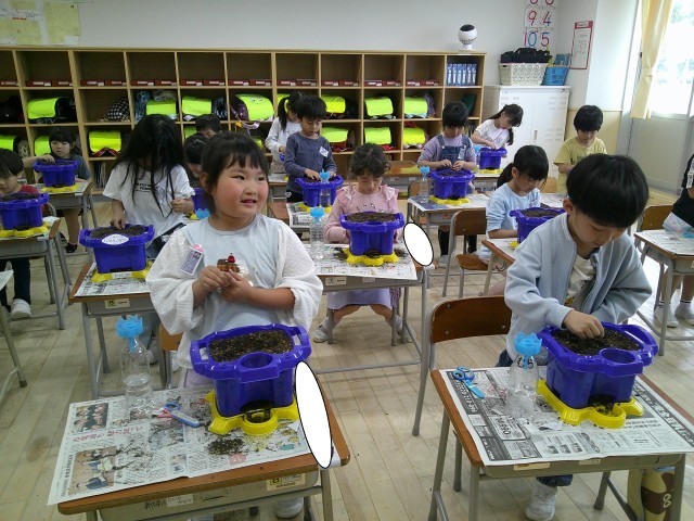 1年生:あさがおの種を植えたよ:5月27日(火)