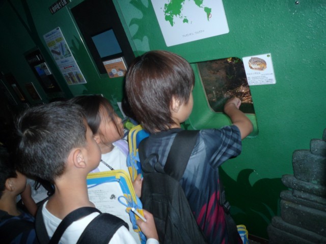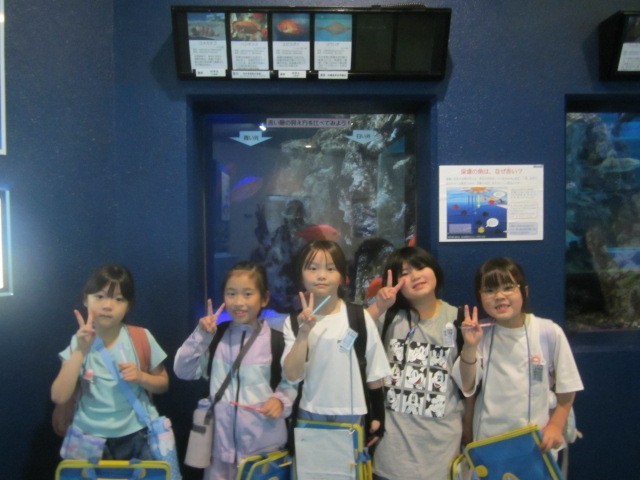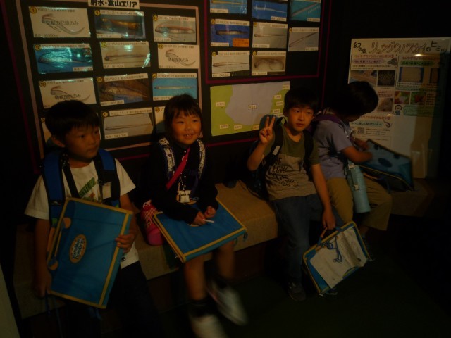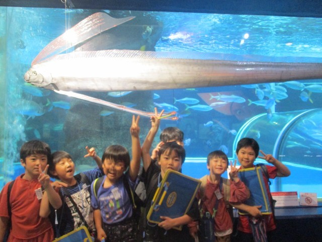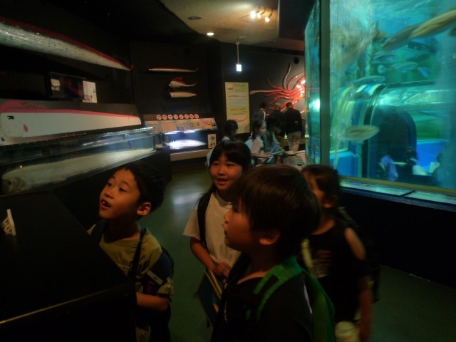 いよいよ館内の見学です。富山湾大水槽では、自由に泳ぎ回る魚たちに釘付け。リュウグウノツカイやダイオウイカの大きさに驚いたり、ジャングルコーナーの生き物をじっくり観察したり、楽しく見て回りました。