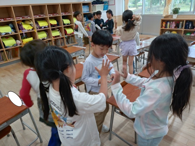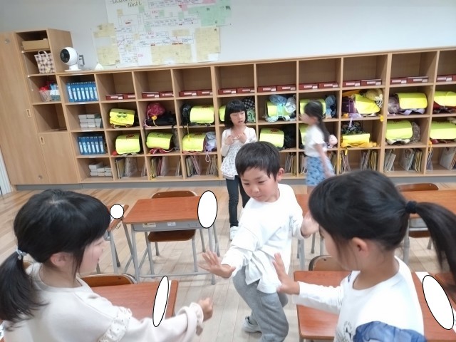 1年生:心のすこやかタイム〔1組〕:6月3日(火) 公開日 2025/06/03 更新日 2025/06/03 1年生の部屋 今日は雨だったので、「心のすこやかタイム」の日でした。1組では、「ぴったりじゃんけん」をしました。3人組でじゃんけんをして、3人とも同じ手を出した時、3人で「グー・チョキ・パー」が揃った時、みんなで「ぴったり~!」と言ってハイタッチをしました。仲間づくりゲームを通して、たくさんの人と関わったり、色々な気持ちを感じたりできたらいいと思います。