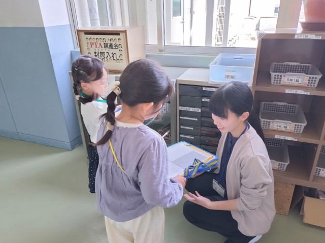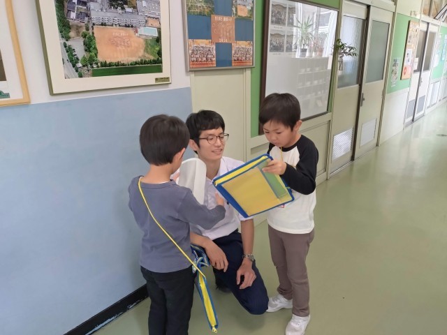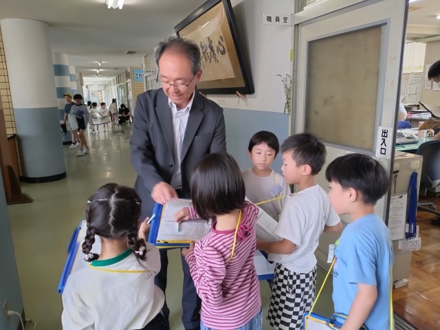 1年生:生活科「先生と仲良し」:6月4日(水) 公開日 2025/06/04 更新日 2025/06/04 1年生の部屋 学校探検が終わり、次は学校の先生、職員の皆さんに名前と仕事を聞きに行っています。カードにたくさんのサインをもらい、嬉しそうな子供たちです。 +3