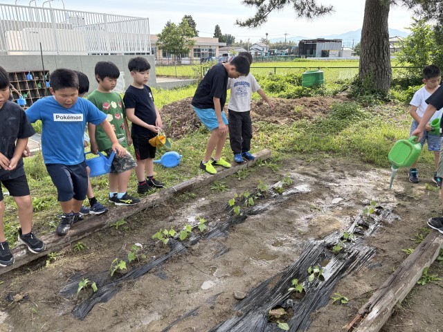 朝は欠かさずヘチマに水やりをしています。早く大きくならないかなと成長していく様子を観察しています。