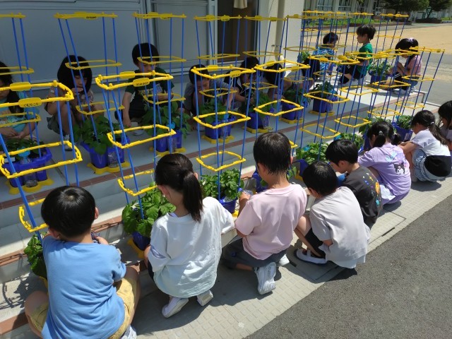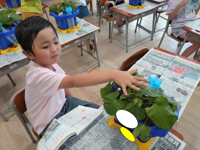 1年生:あさがおが大きくなったよ!:6月20日(金) 公開日 2025/06/25 更新日 2025/06/24 1年生の部屋 あさがおの葉が大きくなり、つるも伸びてきました。支柱を立て、追肥をしました。これからどんどん大きくなり、花が咲くのが楽しみです。 +1