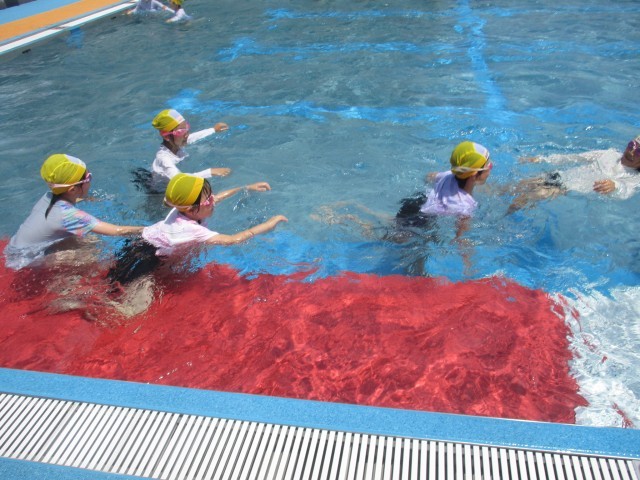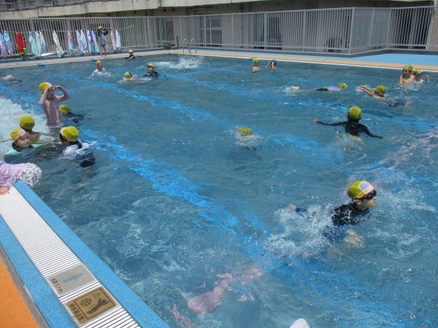いよいよ学校のプールでの水泳学習が始まりました。よい天気で絶好のプール日和。いつもは、少しぶるぶるしてしまう外のシャワーもとても気持ちよさそうでした。先日の八尾B&G海洋センタープールでの学習もよい経験となり、早く泳ぎたいとはりきっていました。これからのプール学習もがんばります。