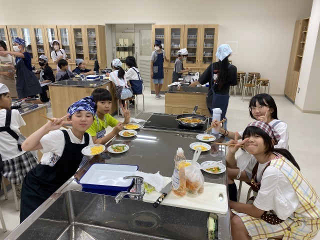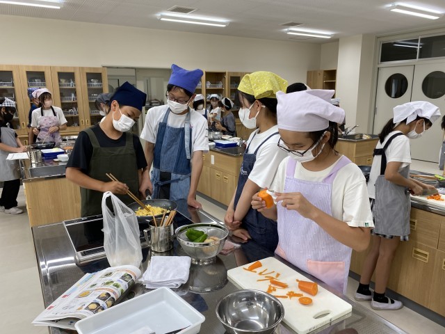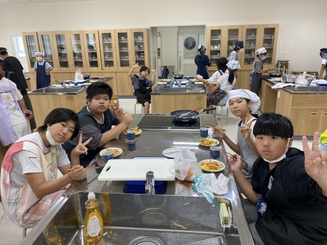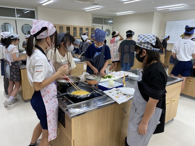 炒める調理で朝食のおかず作りをしました。火加減を調節したり、焦げないように気を付けながら炒めたりと、炒め方について調理実習を通して、学んでいるようでした。
